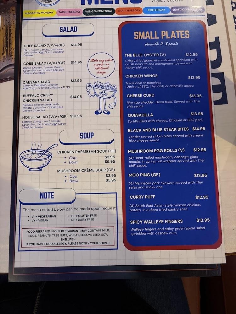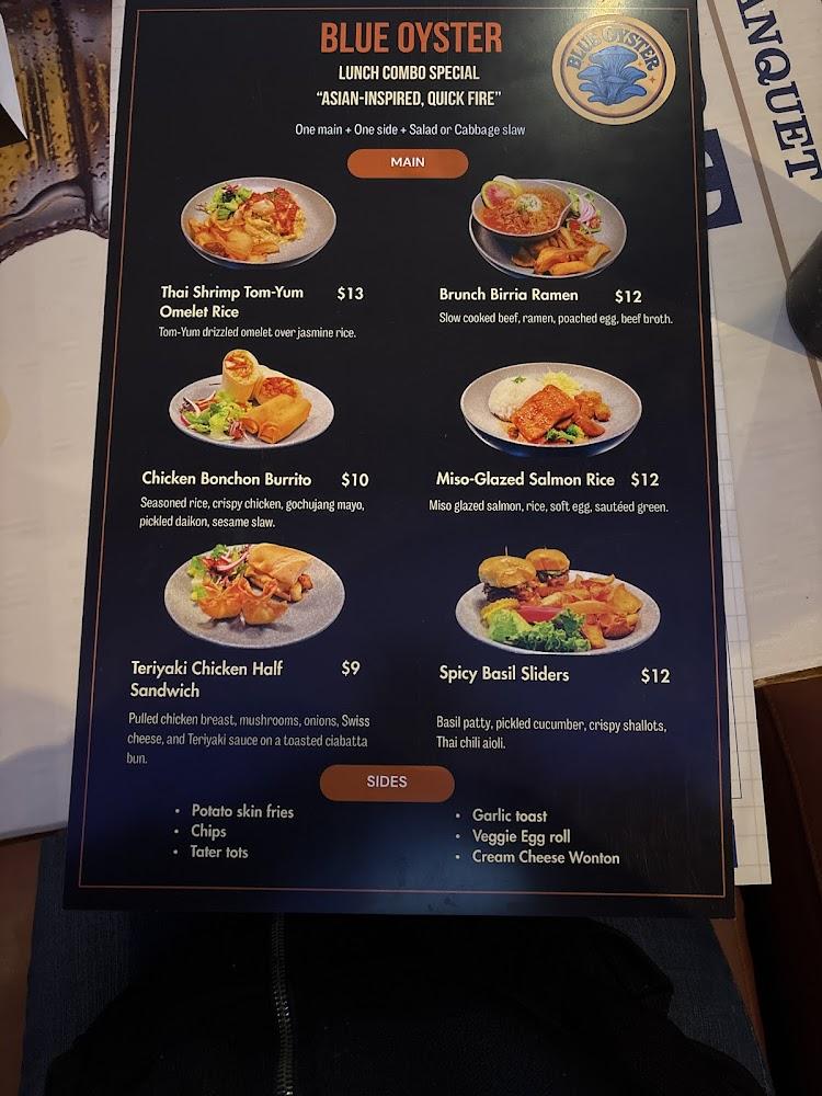 The menu at Blue Oyster offers a delightful mix of American favorites with Thai influences. Popular appetizers like Cheese Curds and Burnt Pork Ends are great starters. The burger selection is impressive, featuring options like the California Burger and classic Bacon Cheese Burger, each priced around $12.50.